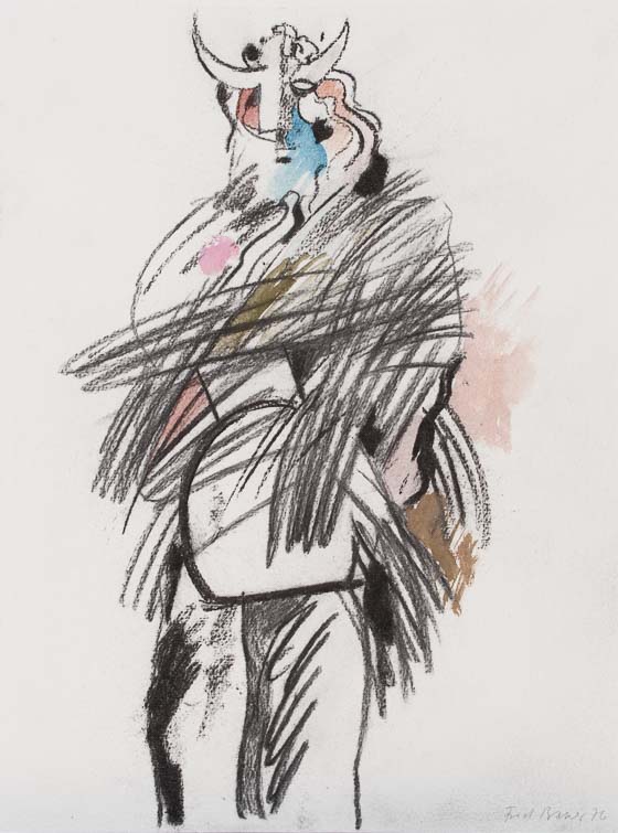 0236_"En wüeschte Chlaus" 12_1976_Kohle/Tempera_36x48 cm