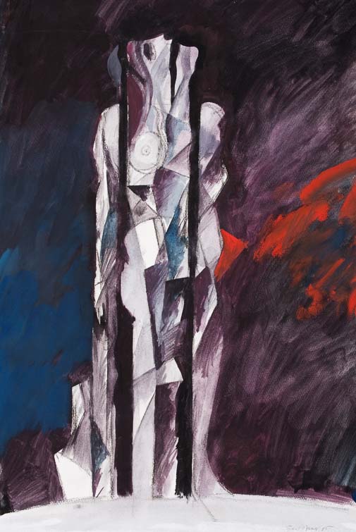 0438_Frau Lot_1985_Kohle/Tempera_46x68 cm