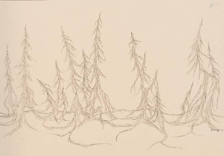 0019_Bergwald_1948_Feder, Tusche_41.5x29 cm