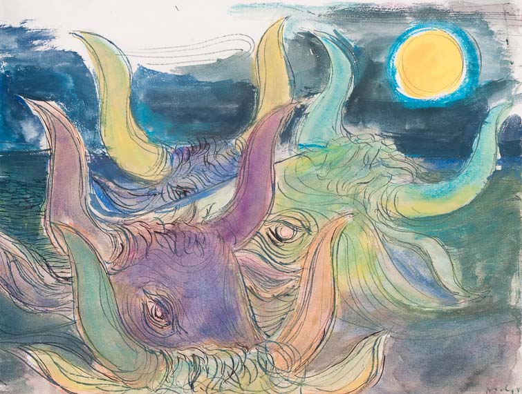 0028a_Wartende Herde_1948_Aquarell, Feder_40x30 cm