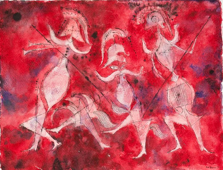 0051_Griechischer Maskentanz_1950/51_Feder,Tusche,Aquarell_34.5x26.5cm