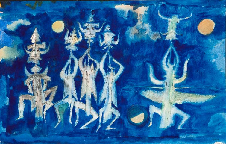 0052_Tanz der Masken_1950/51_Feder,Tusche,Aquarell_39x25.5 cm