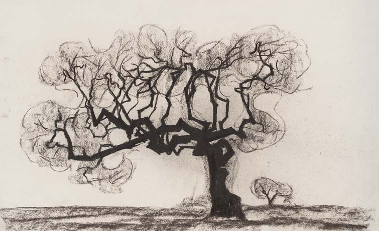 0122_Olive 8_1955_Kohle_50x35.5 cm