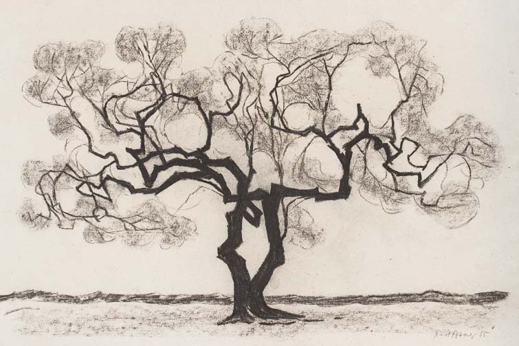 0123_Olive 9_1955_Kohle_47x31.5 cm