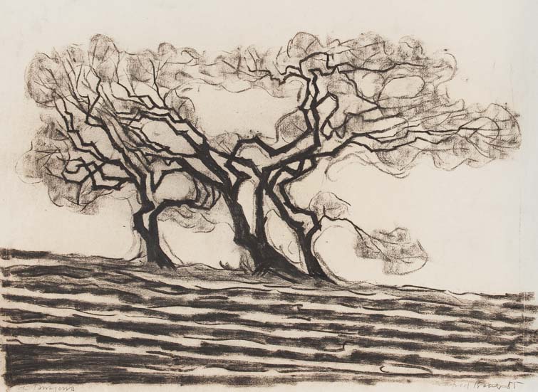 0126_Oliven 2_1955_Kohle_59.5x47.5 cm