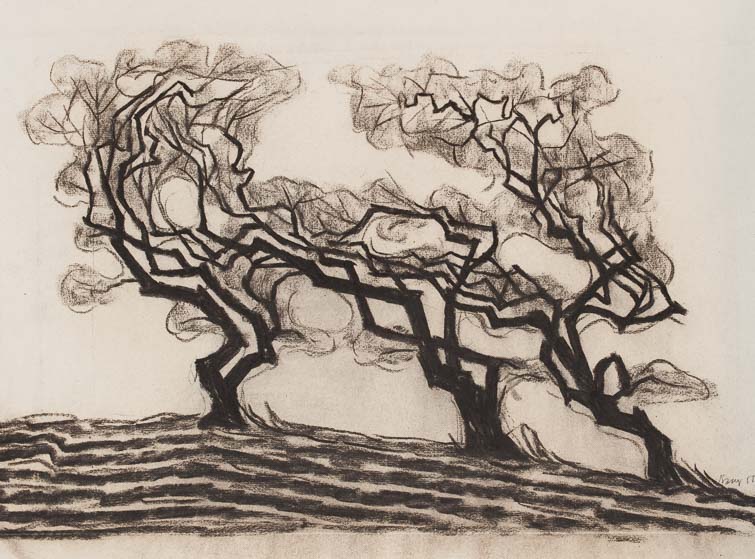 0133_Olivenfeld 6_1955_Kohle_47x31 cm