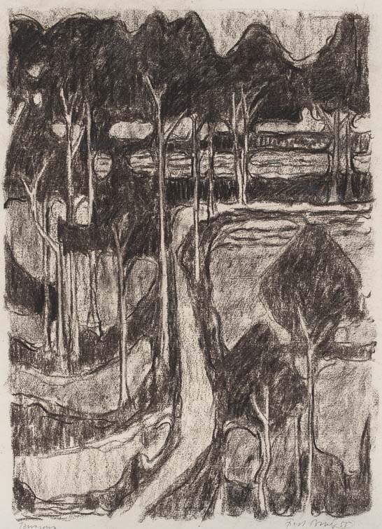 0138_Pinien 3_1955_Kohle_38x51cm