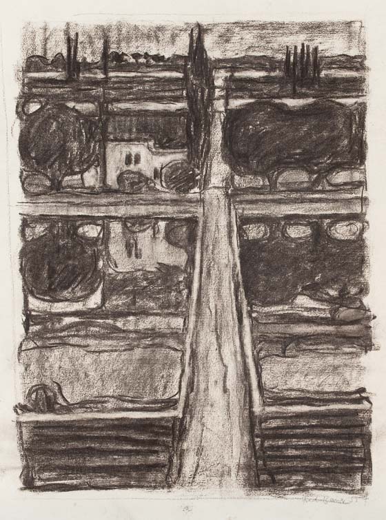 0148_Haus am Weg 1_1955_Kohle_38x49, 5 cm