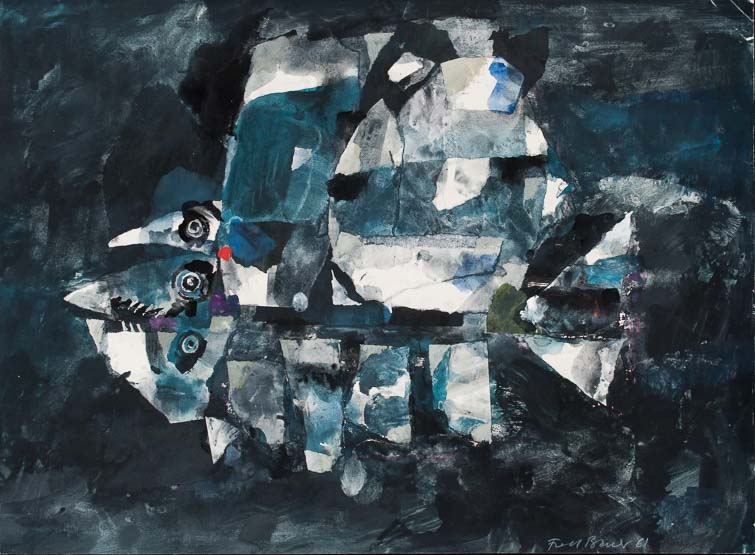 0180_Fisch_1961_Tempera/Collage,_54.5x40.5 cm